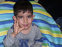 Der knapp ein Meter große Junge mit dunklen, kurzen Haaren und dunklen